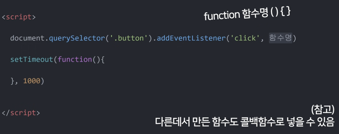 콜백함수 쓰는 이유는 그 함수(콜백) 재활용을 하기 위해서임.