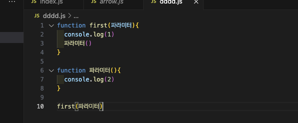 함수안에 인자로 함수가 들어가면 콜백함수임.