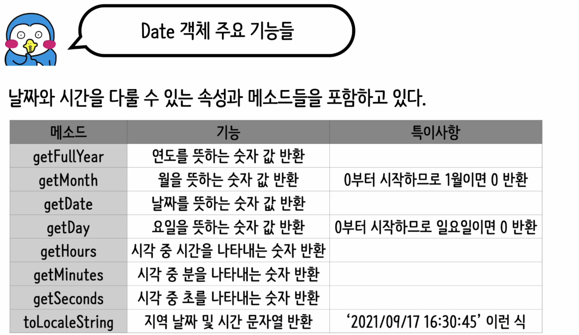 이 객체를 사용하여 날짜와 시간을 다를 수 있다.