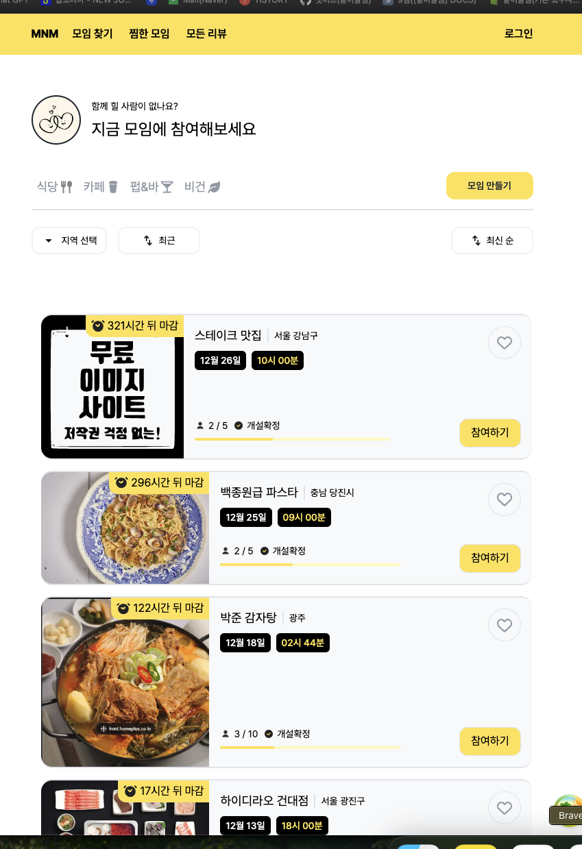 우리 플젝은 음식모임을 생성->만남을 위한 플젝이다.