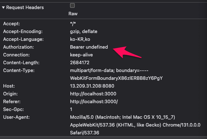 Authorization에서 undefined가 뜨는 것이다...!
