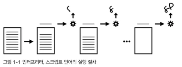 스크립트 언어나 인터프리터 언어는 대개 위에서 아래로 한 줄씩 코드가 실행되는 방식으로 만 들어진다.