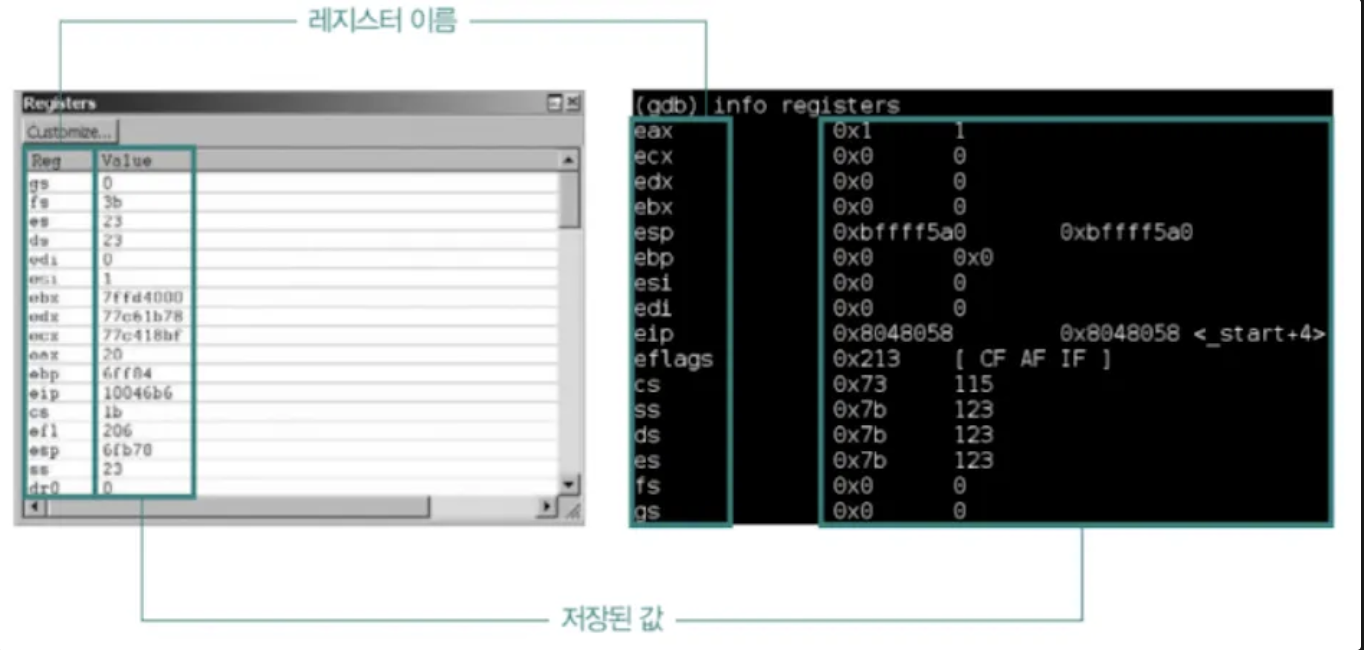 레지스터에 저장된 값만 잘 관찰해도 비교적 낮은 수준의 프로그램이 어떻게 작동하는지 파악 가능