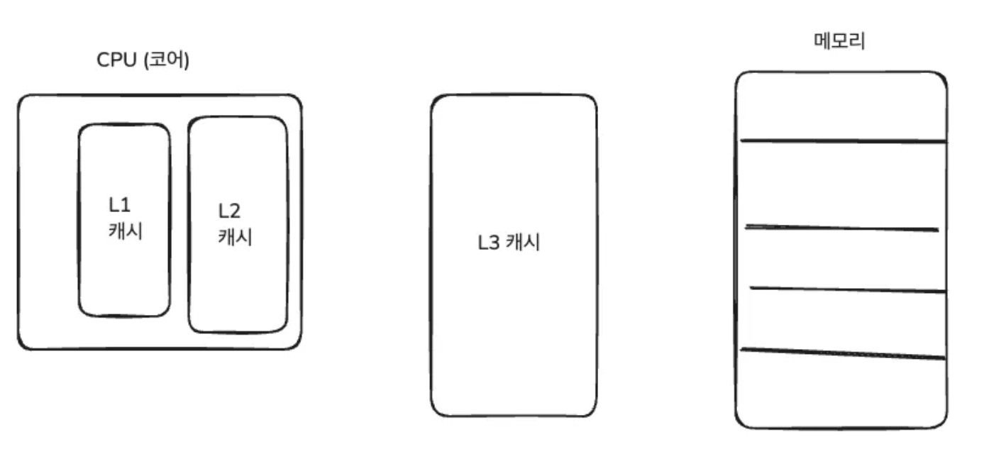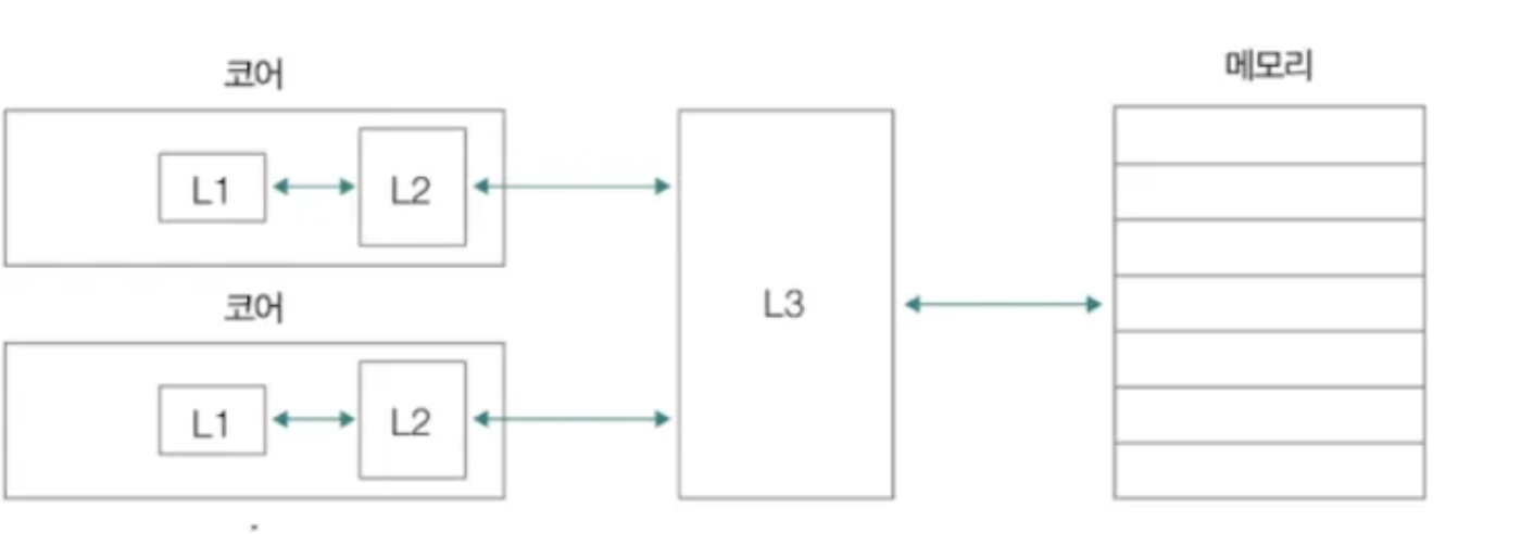 - 캐시 메모리 속도 : L3 < L2 < L1