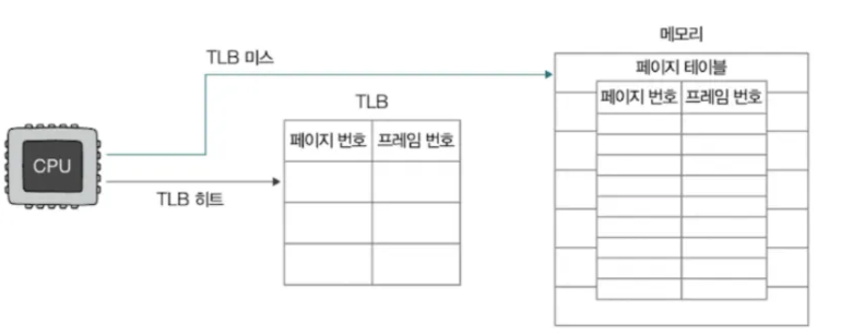 - 페이지 테이블이 커질 경우, **TLB(Translation Lookaside Buffer)**를 사용해 변환 속도를 최적화함.