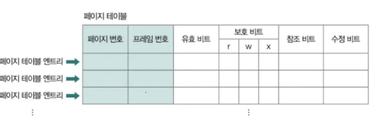 - 페이지 테이블에 저장된 각 페이지의 정보