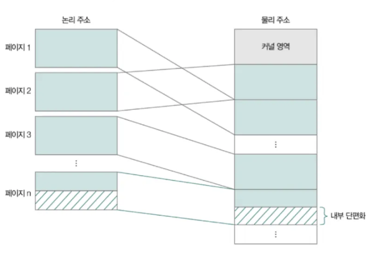 연속 메모리 할당처럼 프로세스 바깥에 빈 공간이 생길 수 없기 때문